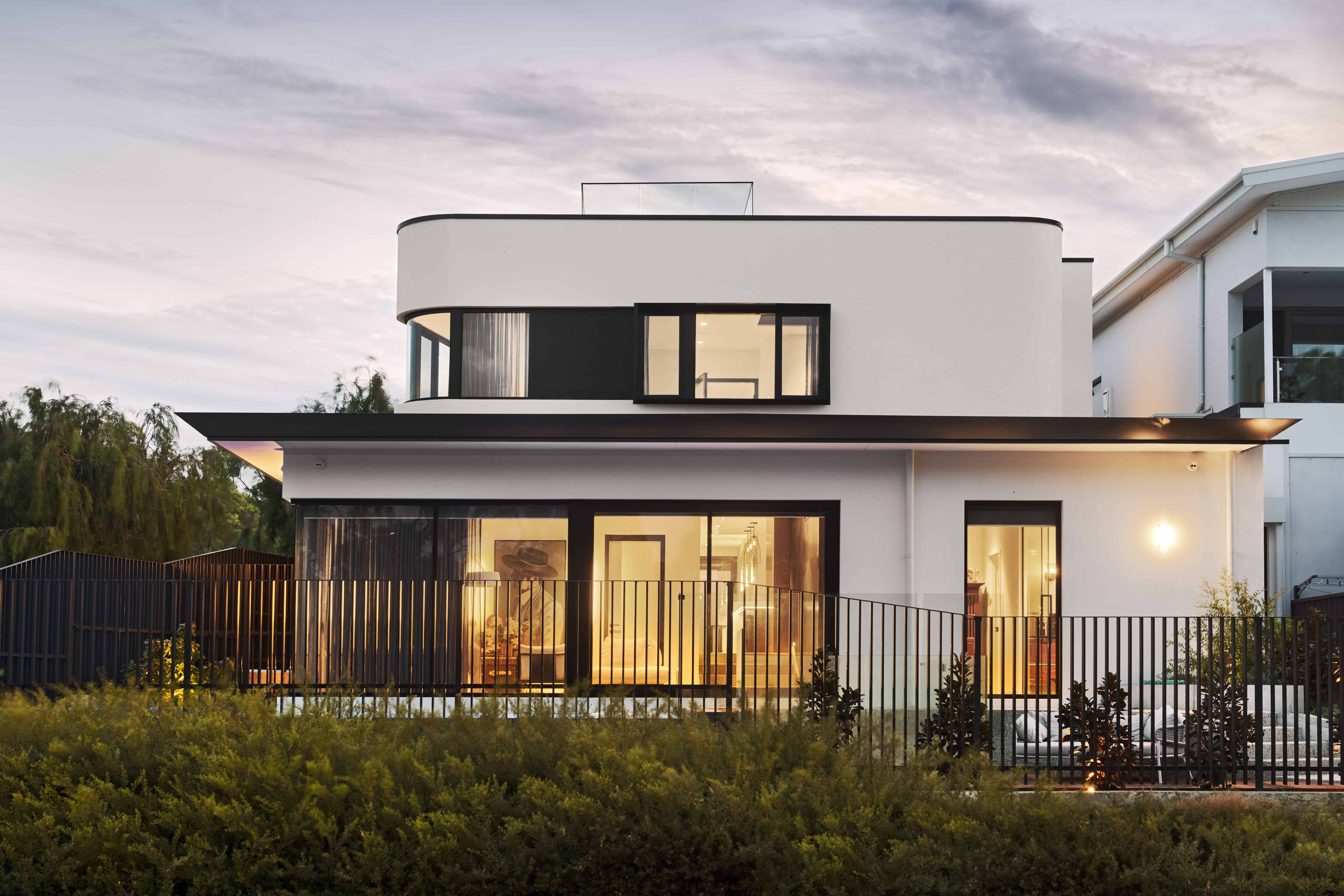 A luxurious residence with genuine wow factor, distinct from neighbouring homes, incorporating Feng Shui principles to guide room orientation and create a calm, balanced and spatially aware floor plan. Light-filled and open, the home draws the outdoors in through extensive glazing that captures surrounding views, contrasted by polished concrete flooring that grounds the interior with a refined, contemporary edge.